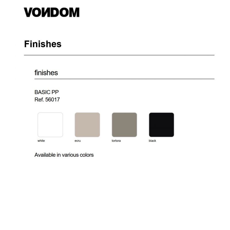 Parteneriate cu designeri internaționali – VONDOM colaborează cu arhitecți și designeri renumiți, precum Stefano Giovannoni, Ludovica + Roberto Palomba, Javier Mariscal, Karim Rashid, A-cero și Ramón Esteve, oferind piese care îmbină estetica contemporană cu funcționalitatea.