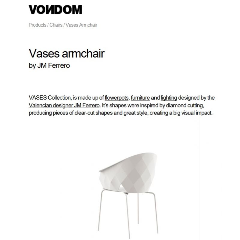 Parteneriate cu designeri internaționali – VONDOM colaborează cu arhitecți și designeri renumiți, precum Stefano Giovannoni, Ludovica + Roberto Palomba, Javier Mariscal, Karim Rashid, A-cero și Ramón Esteve, oferind piese care îmbină estetica contemporană cu funcționalitatea.