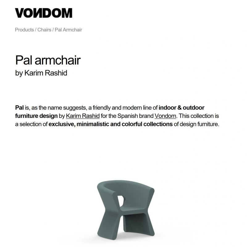Parteneriate cu designeri internaționali – VONDOM colaborează cu arhitecți și designeri renumiți, precum Stefano Giovannoni, Ludovica + Roberto Palomba, Javier Mariscal, Karim Rashid, A-cero și Ramón Esteve, oferind piese care îmbină estetica contemporană cu funcționalitatea.
