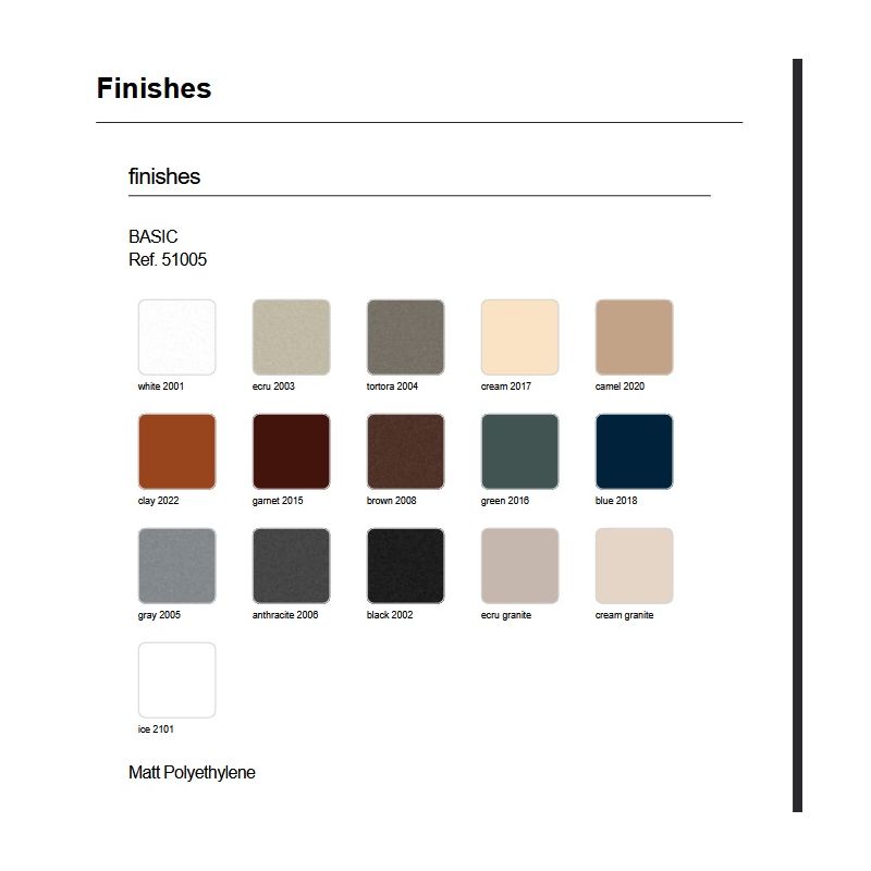 | Culoare | disponibil in mai multe finisaje de culori mate: vezi culorile in pozele de la produs, va rugam specificati culoarea la comanda |