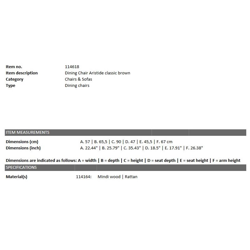 | Descriere | structura din lemn de mindi finisaj maro, sezut si spatar din rattan impletit |