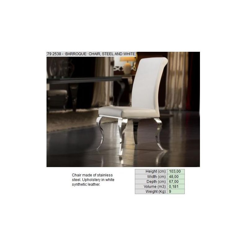 Scaunul Barroque prin liniile elegante ale formei sale si o imbinare inedita de materiale: picioarele din otel inoxidabil ce sustin sezutul disponibil in culoare alb ignifug, aduce stilul care ii poarta numele in epoca moderna. Scaunul Barroque accentueaza eleganta oricarui spatiu interior amenajat intr-o nota contemporana, pentru a inspira confort si rafinament.
