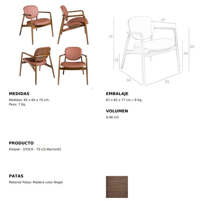 | Materiale | lemn de frasin finisaj nuc, tapiterie din piele ecologica, umplutura spuma |