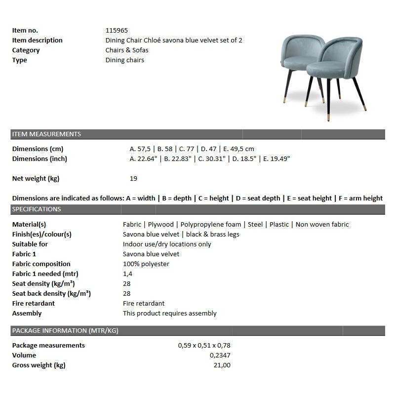 Confortul si designul se impletesc cu eleganta in forma si textura scaunului Chloe. Tapiteria de culoare savona albastru alaturi de picioarele din metal in finisaj negru cu detalii din alama, creeaza un obiect de mobilier cu linii perfecte si functionalitate optima.