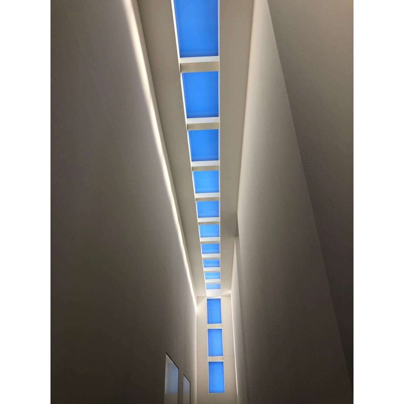 | Informatii produs: | panoul LED recreează ambianța calmă a unui cer senin, fiind ideal pentru spații fără ferestre sau cu lumină naturală limitată. Atunci când este instalat pe perete, proiectează un fascicul de lumină oblic spre podea, simulând o fereastră. |