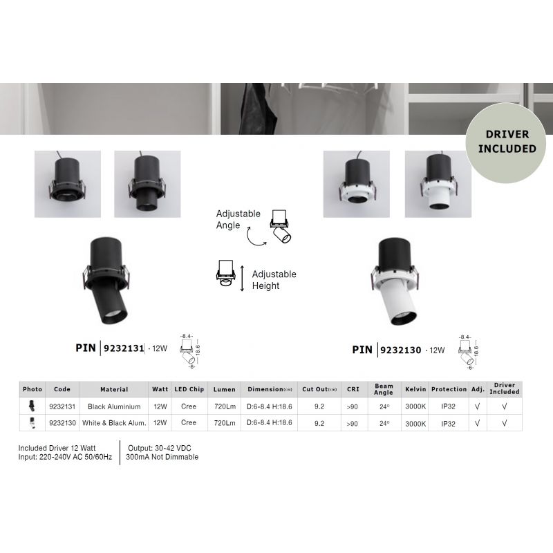 Dimensiuni | diametru spot :6 / 8,4cm; inaltime:18,6; decupaj tavan:9,2cm |