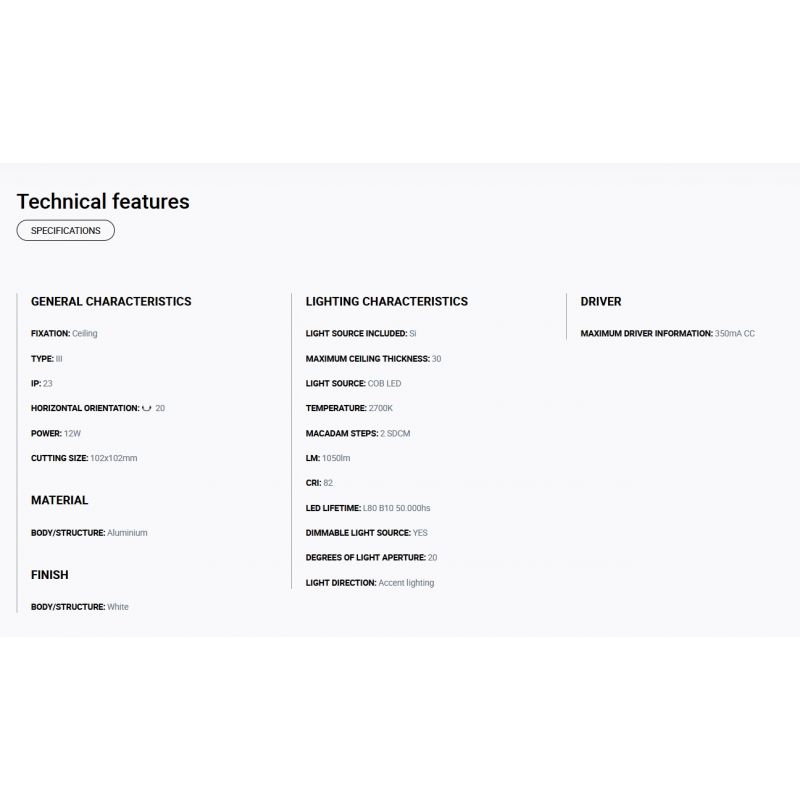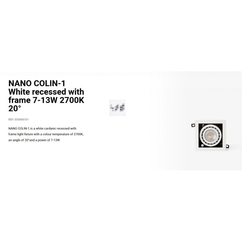 Informatii produs: | spot LED incastrabil NANO COLIN-1 cu grad de iluminare 20 grade, IP23, datorită luminii de 2700K acest spot permite crearea unor atmosfere confortabile, ideal pentru spatii publice, comeciale |