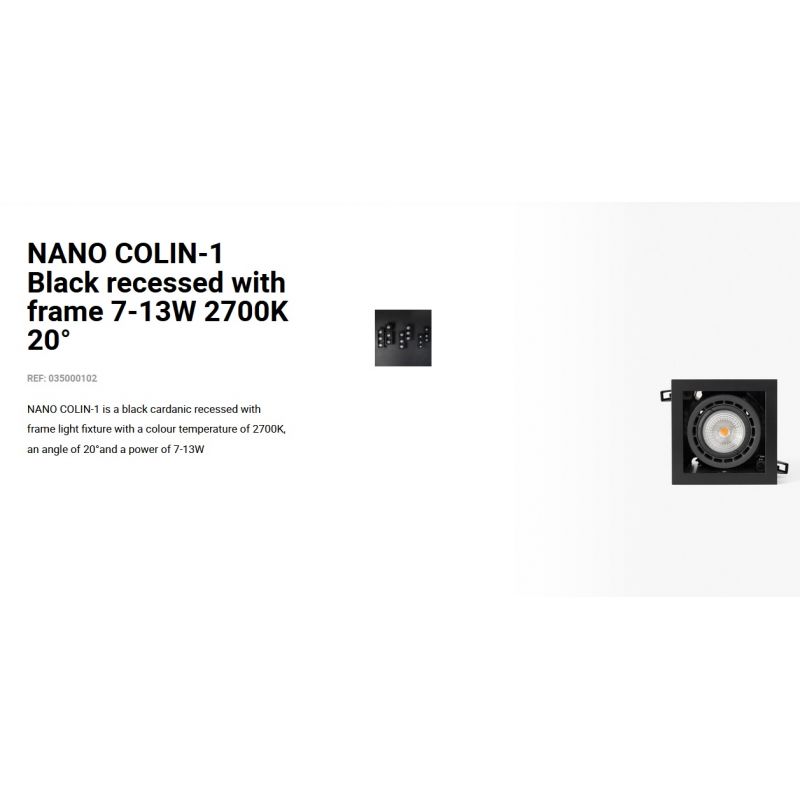 Informatii produs: | spot LED incastrabil NANO COLIN-1 cu grad de iluminare 20 grade, IP23, datorită luminii de 2700K acest spot permite crearea unor atmosfere confortabile, ideal pentru spatii publice, comeciale |