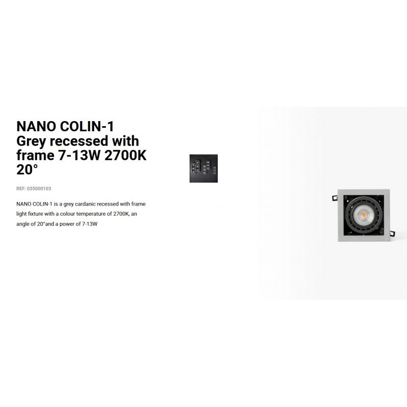 Informatii produs: | spot LED incastrabil NANO COLIN-1 cu grad de iluminare 20 grade, IP23, datorită luminii de 2700K acest spot permite crearea unor atmosfere confortabile, ideal pentru spatii publice, comeciale |