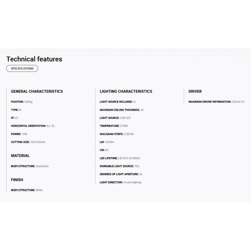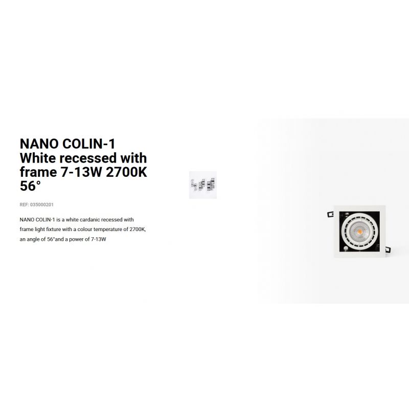 Informatii produs: | spot LED incastrabil NANO COLIN-1 cu grad de iluminare 56 grade, IP23, datorită luminii de 2700K acest spot permite crearea unor atmosfere confortabile, ideal pentru spatii publice, comeciale |