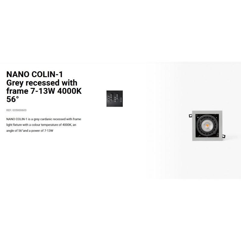 Informatii produs: | spot LED incastrabil NANO COLIN-1 cu grad de iluminare 56 grade, IP23, datorită luminii de 4000K acest spot permite crearea unor atmosfere atmosfere confortabile, ideal pentru spatii publice, comeciale |