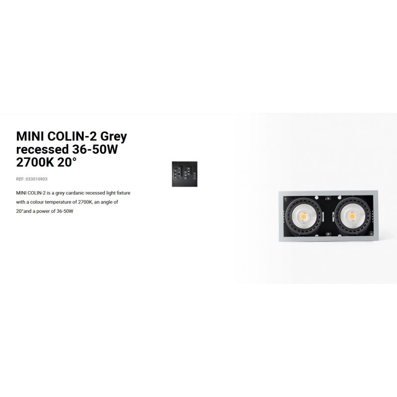 Informatii produs: | spot LED incastrabil MINI COLIN-2 cu grad de iluminare 20 grade, IP23, datorită luminii de 2700K acest spot permite crearea unor atmosfere confortabile, ideal pentru spatii publice, comeciale |