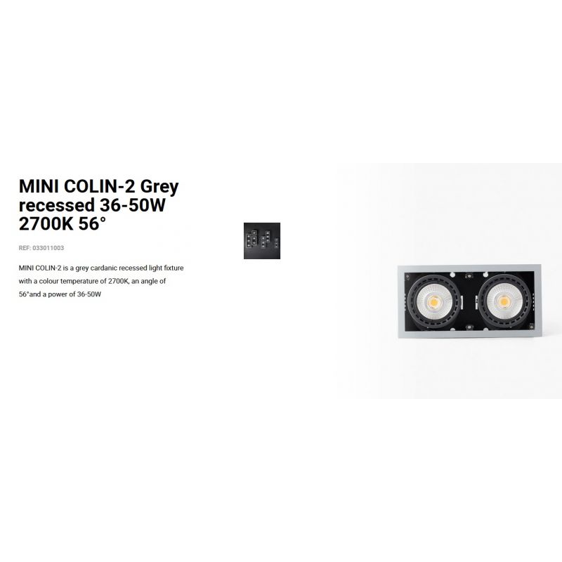 Informatii produs: | spot LED incastrabil MINI COLIN-2 cu grad de iluminare 56 grade, IP23, datorită luminii de 2700K acest spot permite crearea unor atmosfere confortabile, ideal pentru spatii publice, comeciale |
