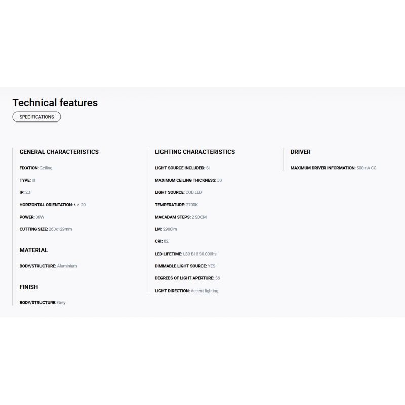 Putere | 36Watt modul LED COB dimabil incorporat, 2900LM, 2700K, CRI 82, driver exclus din pret ( Dali, Casambi sau Triac) |