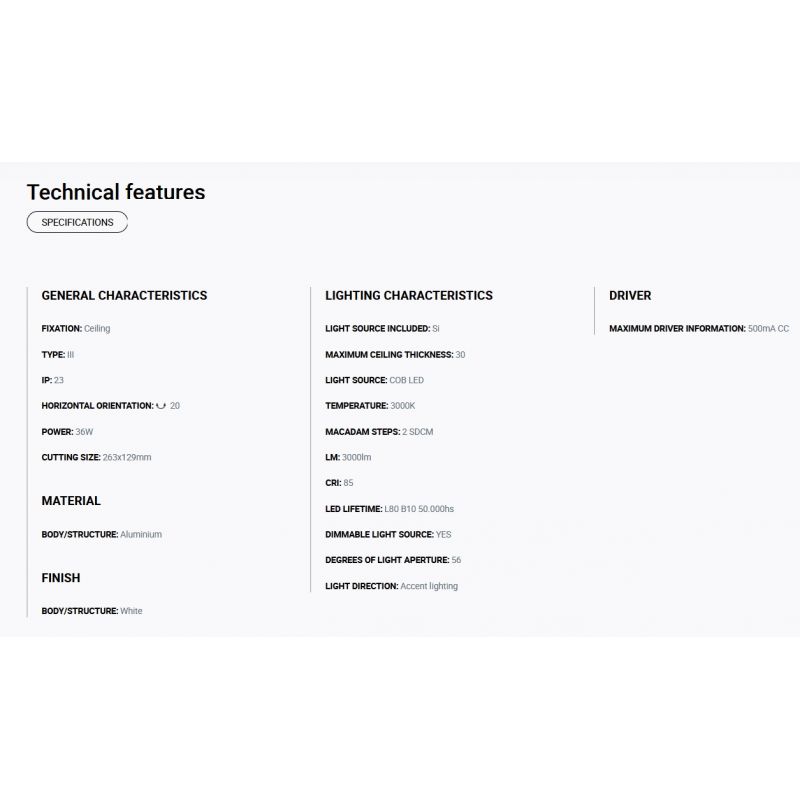 Putere | 36Watt modul LED COB dimabil incorporat, 3000LM, 3000K, CRI 85, driver exclus din pret ( Dali, Casambi sau Triac) |