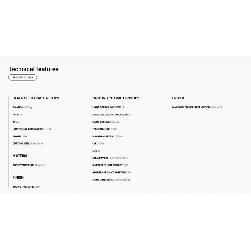Putere | 36Watt modul LED COB dimabil incorporat, 3000LM, 3000K, CRI 85, driver exclus din pret ( Dali, Casambi sau Triac) |