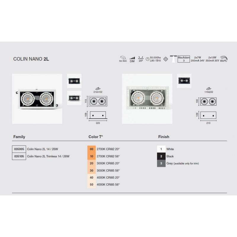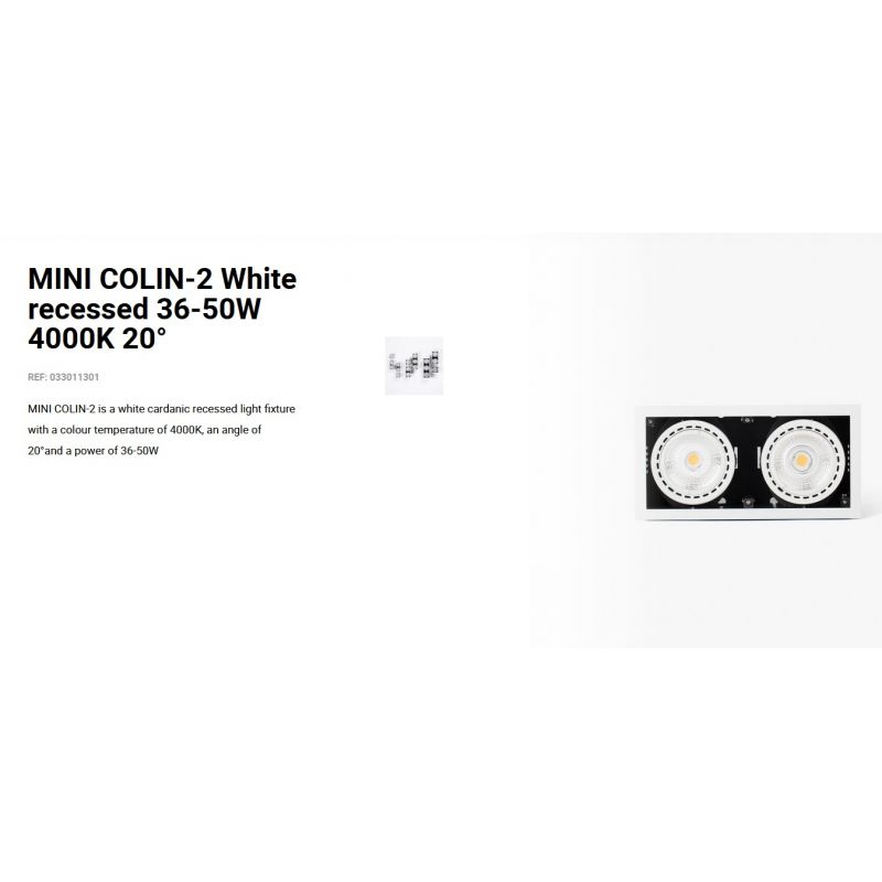 Informatii produs: | spot LED incastrabil MINI COLIN-2 cu grad de iluminare 20 grade, IP23, datorită luminii de 4000K acest spot permite crearea unor atmosfere confortabile, ideal pentru spatii publice, comeciale |