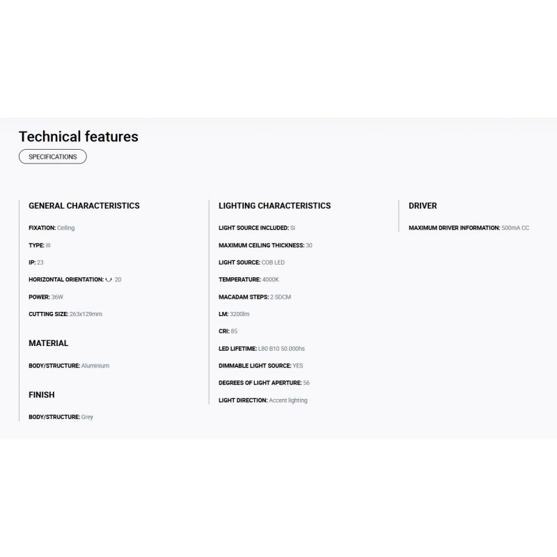 Putere | 36Watt modul LED COB dimabil incorporat, 3200LM, 4000K, CRI 85, driver exclus din pret ( Dali, Casambi sau Triac) |