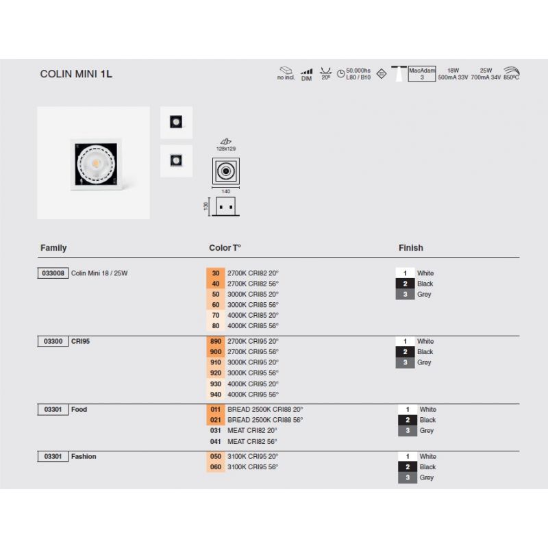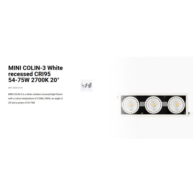 Informatii produs: | spot LED incastrabil MINI COLIN-3 cu grad de iluminare 20 grade, IP23, datorită luminii de 2700K acest spot permite crearea unor atmosfere confortabile, ideal pentru spatii publice, comeciale |