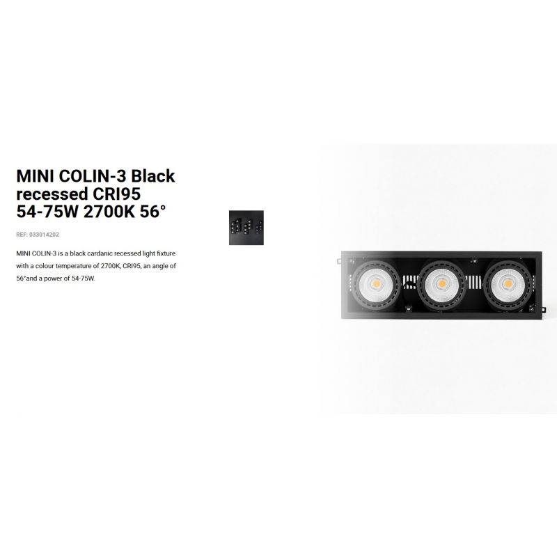 Informatii produs: | spot LED incastrabil MINI COLIN-3 cu grad de iluminare 56 grade, IP23, datorită luminii de 2700K acest spot permite crearea unor atmosfere confortabile, ideal pentru spatii publice, comeciale |