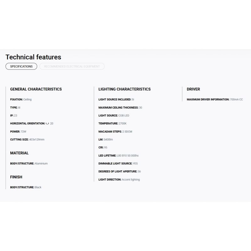 Putere | 72Watt modul LED COB dimabil incorporat, 5400LM, 2700K, CRI 85, driver exclus din pret ( Dali, Casambi sau Triac) |