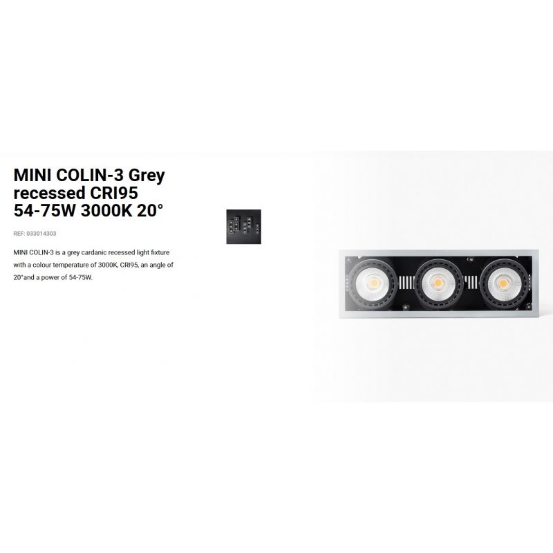 Informatii produs: | spot LED incastrabil MINI COLIN-3 cu grad de iluminare 20 grade, IP23, datorită luminii de 3000K acest spot permite crearea unor atmosfere calde si confortabile, ideal pentru spatii publice, comeciale |