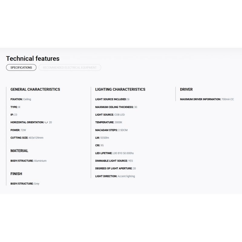 Putere | 72Watt modul LED COB dimabil incorporat, 5550LM, 3000K, CRI 85, driver exclus din pret ( Dali, Casambi sau Triac) |