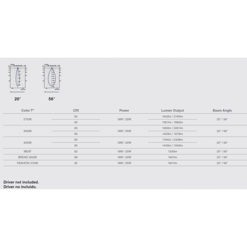 Putere | 72Watt modul LED COB dimabil incorporat, 5550LM, 3000K, CRI 85, driver exclus din pret ( Dali, Casambi sau Triac) |