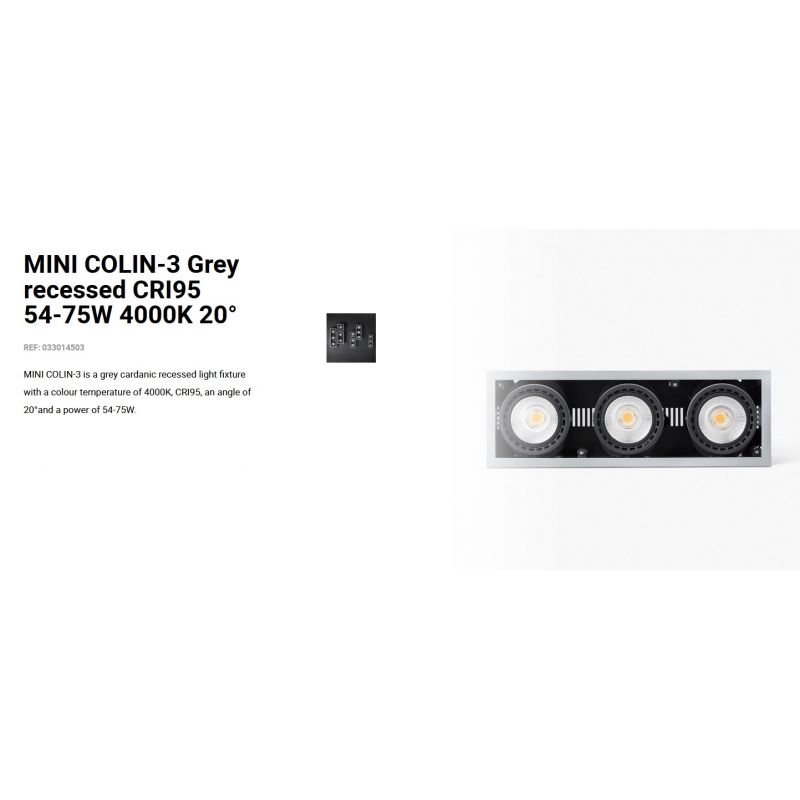 Informatii produs: | spot LED incastrabil MINI COLIN-3 cu grad de iluminare 20 grade, IP23, datorită luminii de 4000K acest spot permite crearea unor atmosfere confortabile, ideal pentru spatii publice, comerciale |