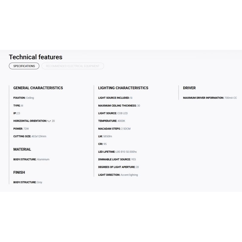 Putere | 72Watt modul LED COB dimabil incorporat, 5850LM, 4000K, CRI 85, driver exclus din pret ( Dali, Casambi sau Triac) |