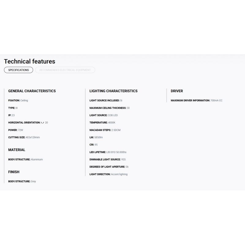 Putere | 72Watt modul LED COB dimabil incorporat, 5850LM, 4000K, CRI 85, driver exclus din pret ( Dali, Casambi sau Triac) |