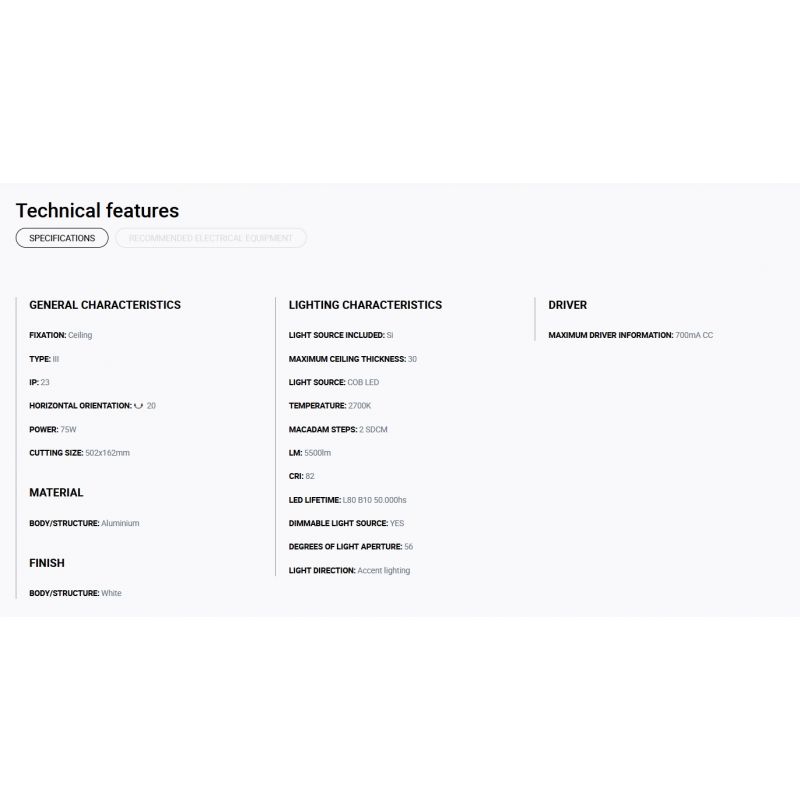 Putere | 75Watt modul LED COB dimabil incorporat, 5500LM, 2700K, CRI 82, driver exclus din pret ( Dali, Casambi sau Triac) |