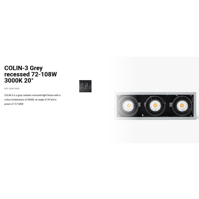 Informatii produs: | spot LED incastrabil COLIN-3 cu grad de iluminare 20 grade, IP23, datorită luminii de 3000K acest spot permite crearea unor atmosfere calde si confortabile, ideal pentru spatii publice, comerciale |