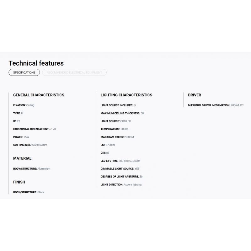 Putere | 75Watt modul LED COB dimabil incorporat, 5700LM, 3000K, CRI 85, driver exclus din pret ( Dali, Casambi sau Triac) |