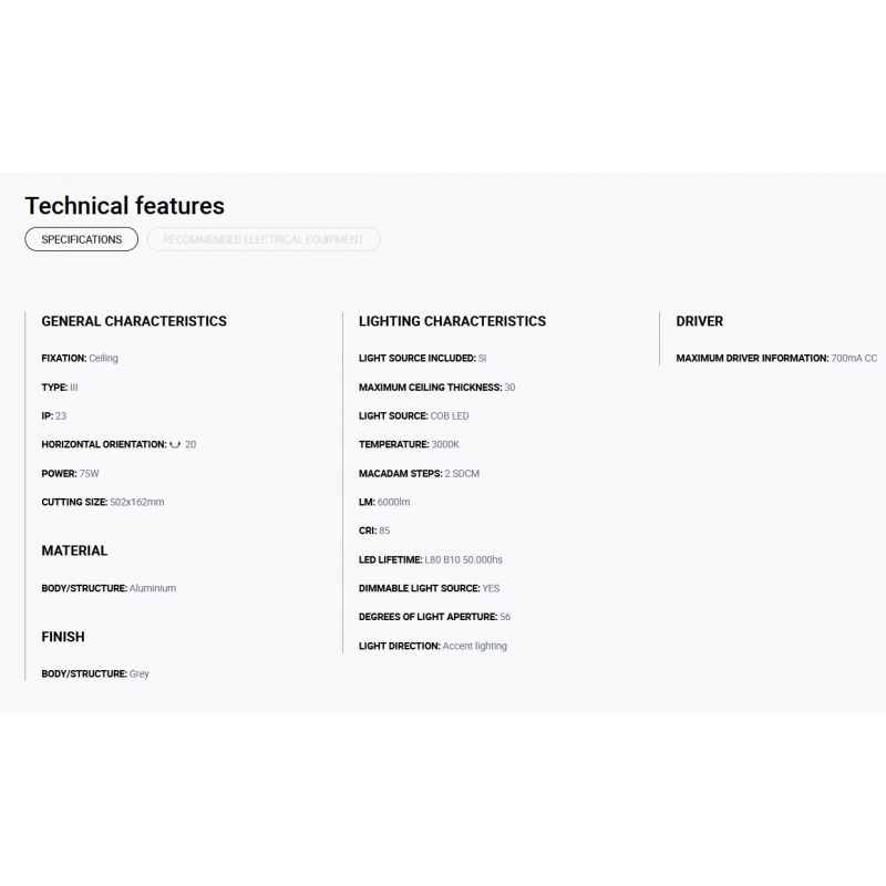 Putere | 75Watt modul LED COB dimabil incorporat, 5700LM, 3000K, CRI 85, driver exclus din pret ( Dali, Casambi sau Triac) |