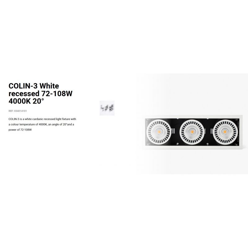 Informatii produs: | spot LED incastrabil COLIN-3 cu grad de iluminare 20 grade, IP23, datorită luminii de 4000K acest spot permite crearea unor atmosfere confortabile, ideal pentru spatii publice, comerciale |