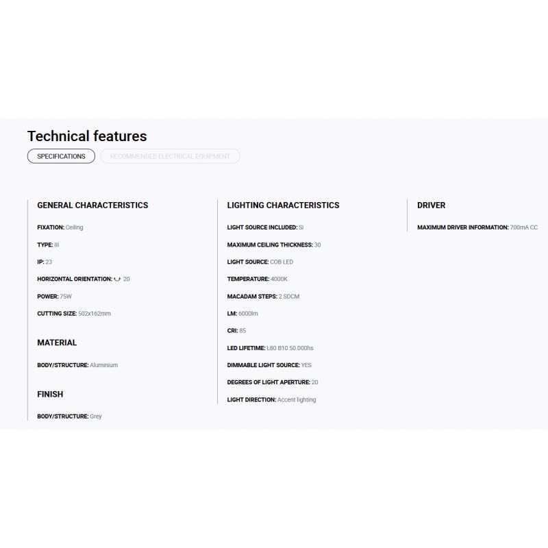 Putere | 75Watt modul LED COB dimabil incorporat, 6000LM, 4000K, CRI 85, driver exclus din pret ( Dali, Casambi sau Triac) |