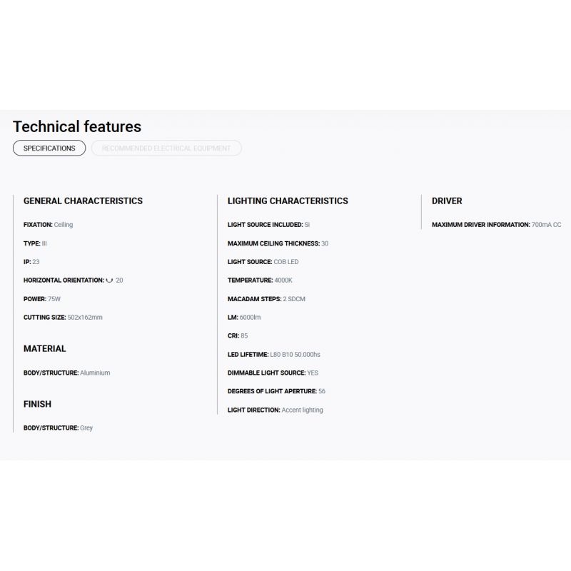 Putere | 75Watt modul LED COB dimabil incorporat, 6000LM, 4000K, CRI 85, driver exclus din pret ( Dali, Casambi sau Triac) |