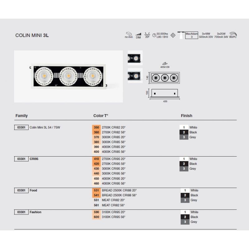 | Informatii produs: | spot LED incastrabil MINI COLIN-3 cu grad de iluminare 56 grade, IP23, datorită luminii de 3000K acest spot permite crearea unor atmosfere calde si confortabile, ideal pentru spatii publice, comeciale |