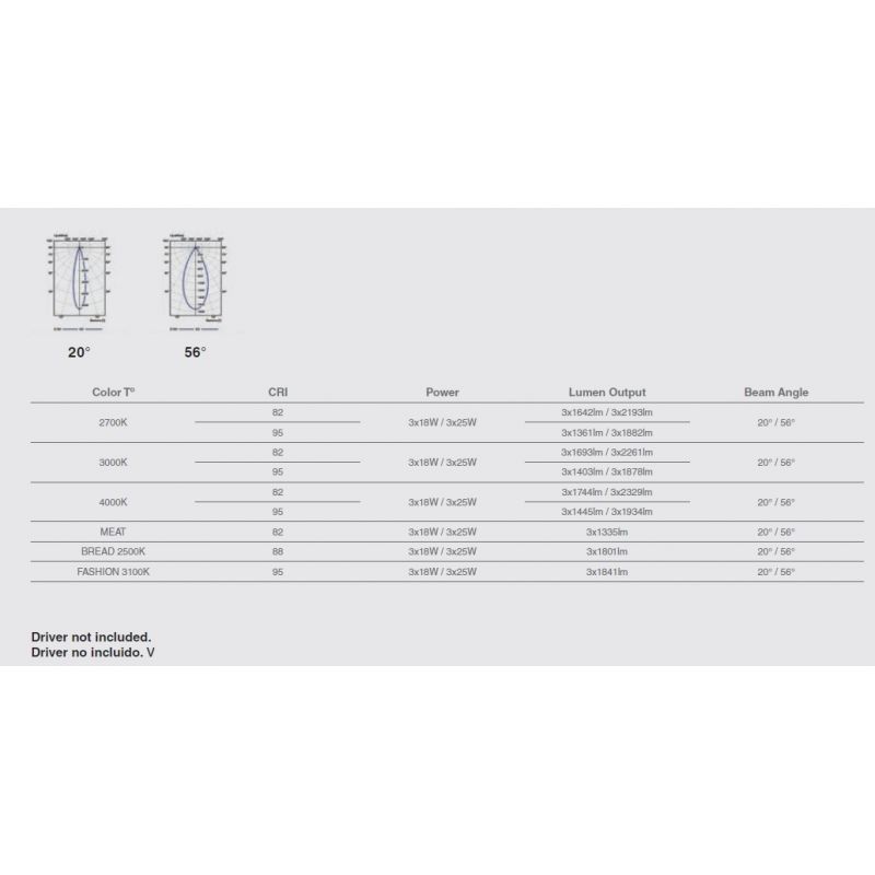 | Putere | 54Watt modul LED COB dimabil incorporat, 4500LM, 3000K, CRI 85, driver exclus din pret ( Dali, Casambi sau Triac) |