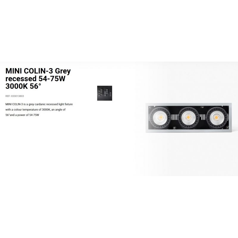 Informatii produs: | spot LED incastrabil MINI COLIN-3 cu grad de iluminare 56 grade, IP23, datorită luminii de 3000K acest spot permite crearea unor atmosfere calde si confortabile, ideal pentru spatii publice, comeciale |