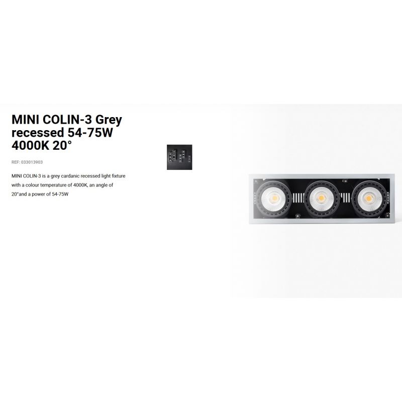 Informatii produs: | spot LED incastrabil MINI COLIN-3 cu grad de iluminare 20 grade, IP23, datorită luminii de 4000K acest spot permite crearea unor atmosfere confortabile, ideal pentru spatii publice, comeciale |