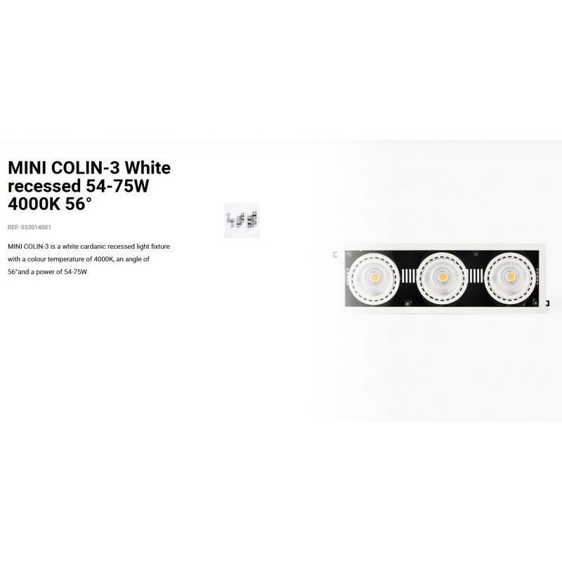 Informatii produs: | spot LED incastrabil MINI COLIN-3 cu grad de iluminare 56 grade, IP23, datorită luminii de 4000K acest spot permite crearea unor atmosfere confortabile, ideal pentru spatii publice, comeciale |