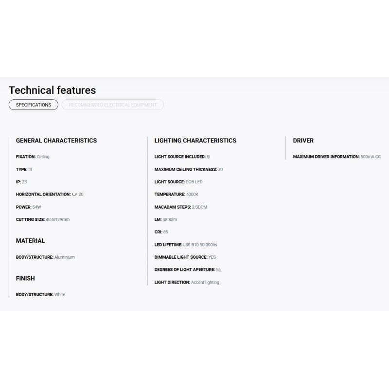 Putere | 54Watt modul LED COB dimabil incorporat, 4800LM, 4000K, CRI 85, driver exclus din pret ( Dali, Casambi sau Triac) |