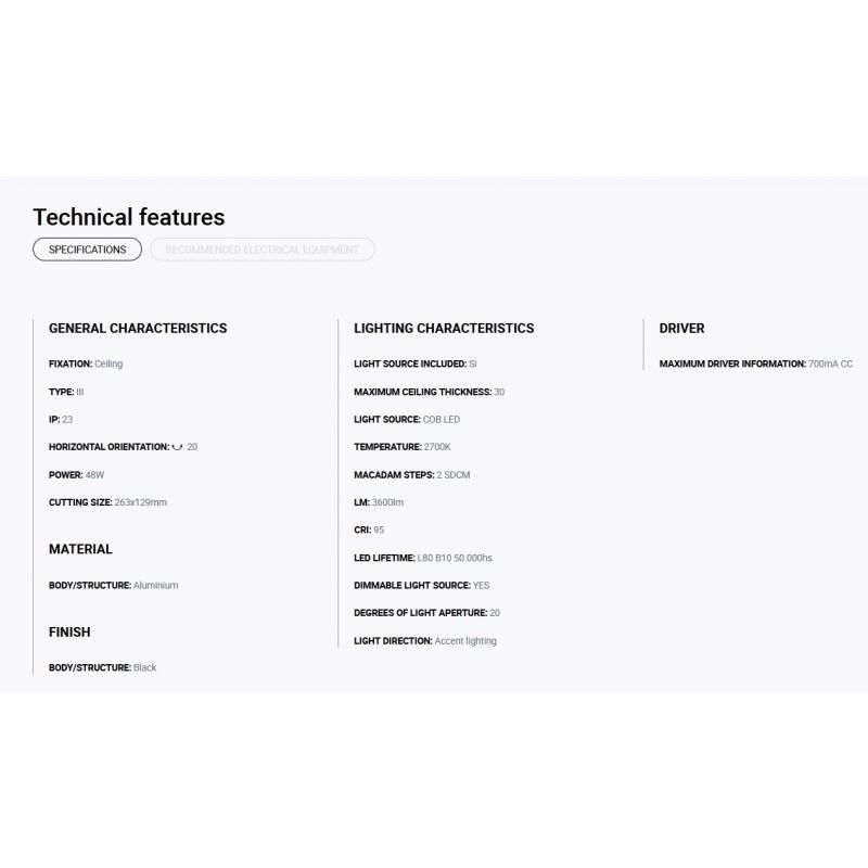 Putere | 48Watt modul LED COB dimabil incorporat, 3600LM, 2700K, CRI 95, driver exclus din pret ( Dali, Casambi sau Triac) |