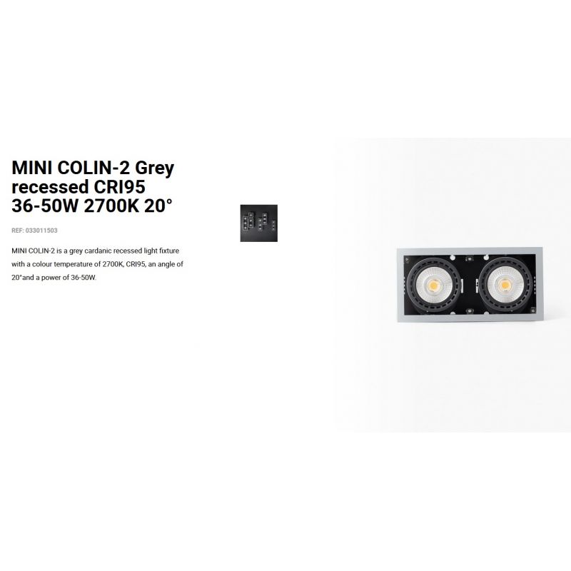 Informatii produs: | spot LED incastrabil MINI COLIN-2 cu grad de iluminare 20 grade, IP23, datorită luminii de 2700K acest spot permite crearea unor atmosfere confortabile, ideal pentru spatii publice, comeciale |
