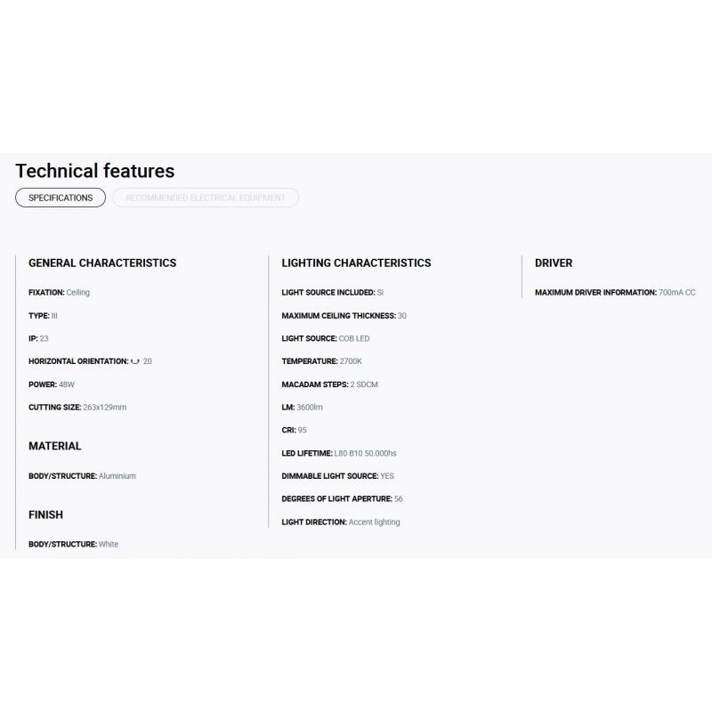 Putere | 48Watt modul LED COB dimabil incorporat, 3600LM, 2700K, CRI 95, driver exclus din pret ( Dali, Casambi sau Triac) |