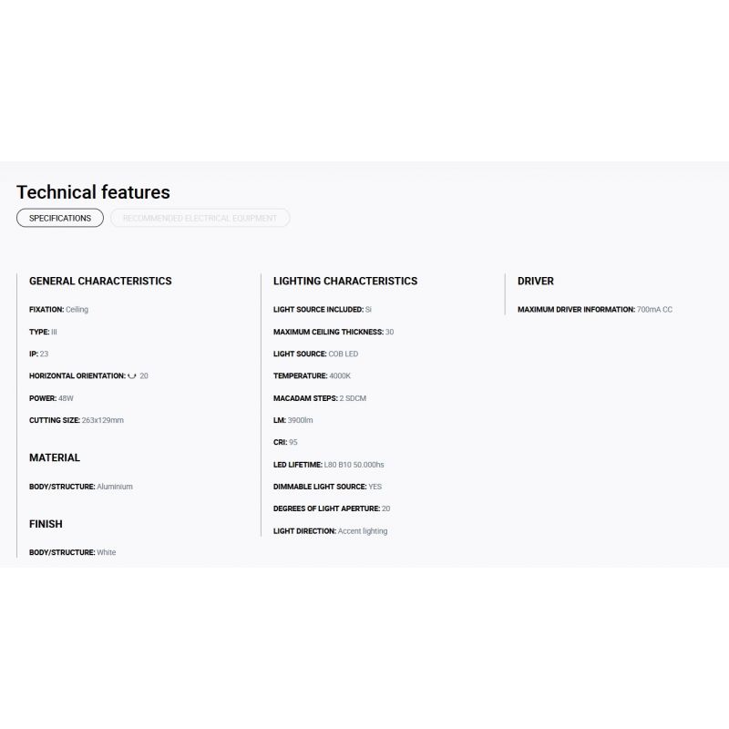 Putere | 48Watt modul LED COB dimabil incorporat, 3900LM, 4000K, CRI 95, driver exclus din pret ( Dali, Casambi sau Triac) |