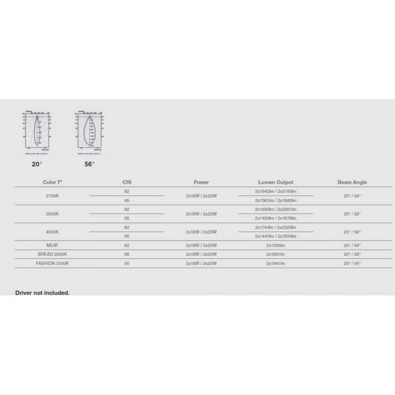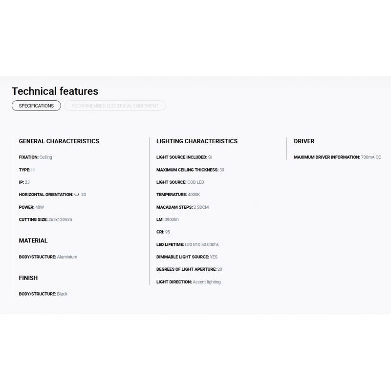 Putere | 48Watt modul LED COB dimabil incorporat, 3900LM, 4000K, CRI 95, driver exclus din pret ( Dali, Casambi sau Triac) |