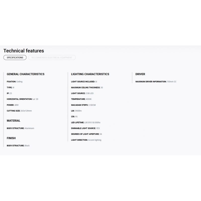 Putere | 48Watt modul LED COB dimabil incorporat, 3900LM, 4000K, CRI 95, driver exclus din pret ( Dali, Casambi sau Triac) |